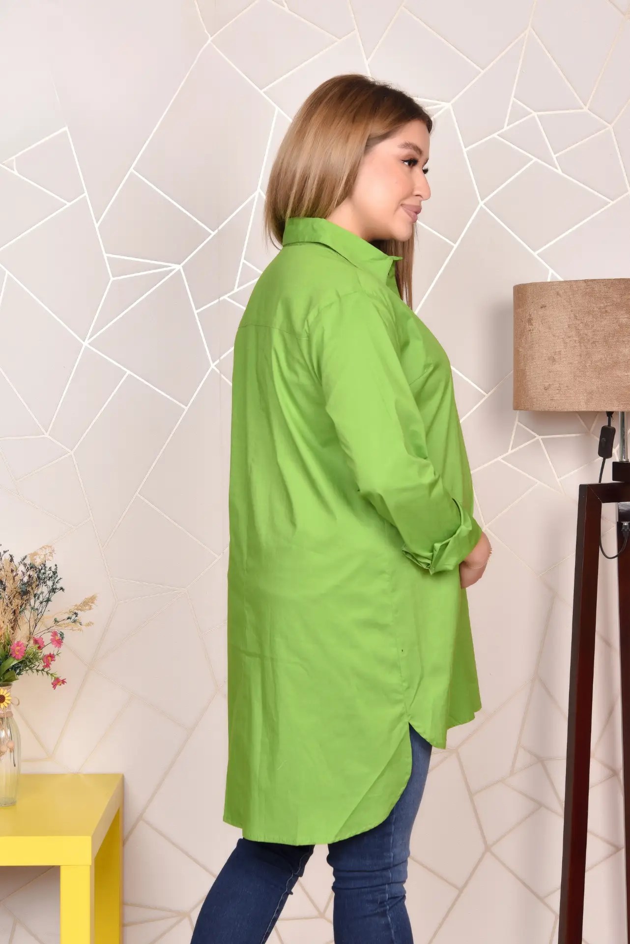 Green Long blouse Poplin cotton lycra 100%